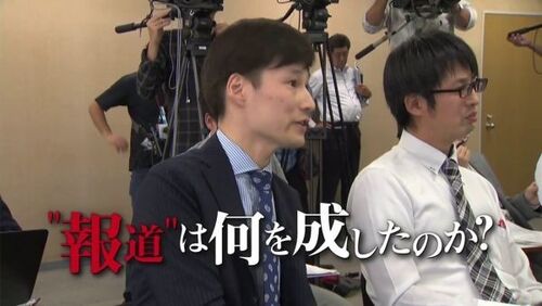 廊下から階段を歩く間つきまとい、マイクを突き出してコメントを取ろうとするレポーター。ずっとごまかしてきたネコババを糾弾され一瞬表情がこわばるが、すぐに思い付きの嘘でその場をやり過ごそうとする議員。カメラは地方TV局のレポーターと記者に密着、…