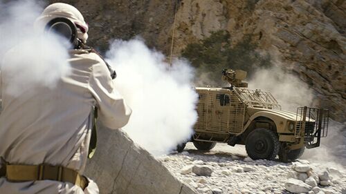 渓谷の狭い道で待ち伏せにあった。切り立った崖に姿を隠した敵は、銃弾砲弾を容赦なく撃ち込んでくる。後続車は地雷を踏んで足止めを食い、戦闘ヘリが来るまでは自力で持ちこたえなければならない。物語は、武装勢力に破壊された村に救援物資を運ぶ外国部隊…
