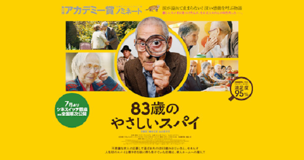 探偵募集の新聞求人広告に集まった80歳から90歳までの高齢の男たち。みな勤労意欲満々で、健康かつ頭の働きも衰えていないと懸命にアピールする。だが、面接で必須能力とされたスマホや小道具が使いこなせず次々に落とされていく。物語は、虐待の証拠をつかむために老人ホームに潜入した男のスパイ活動を追う。自らホームの世話になる名目で、ターゲットの身辺を探る。名前はわかっているが顔はよくわからない。ひとりずつ部屋と名前を確認していくうちに、ほとんどが女という環境のなか、いつしか彼は彼女たちの良き話し相手となっていく。人生最晩年にやってきた突然のモテ期、それに動じず上司の命令をこなす彼にはもはや下心などなく、それがまた女心をくすぐる。噂をする老婆たちの瞳が少女のように輝くのが印象的だった。